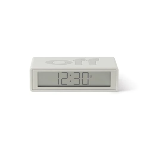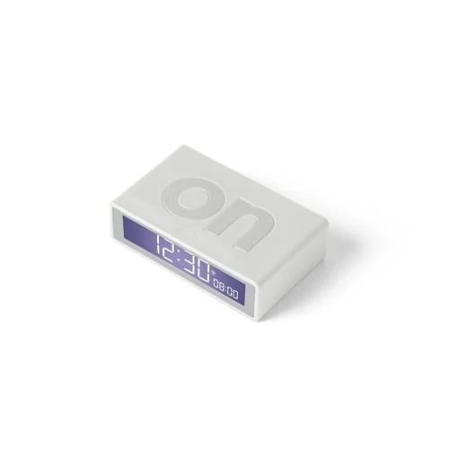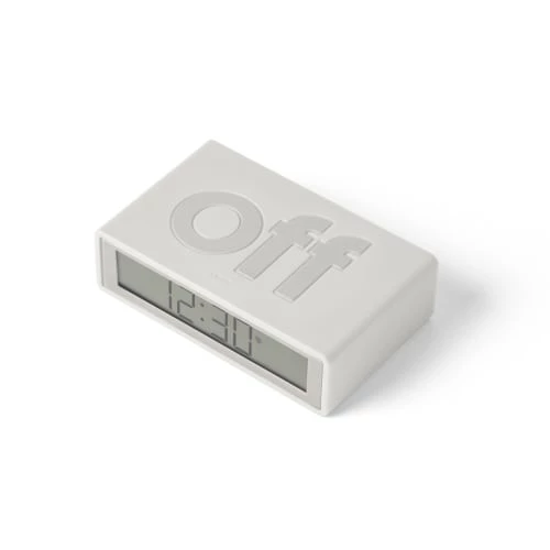 Original et doté de deux faces (ON/OFF), le réveil doit être retourné pour être activé ou désactivé d’un simple geste.