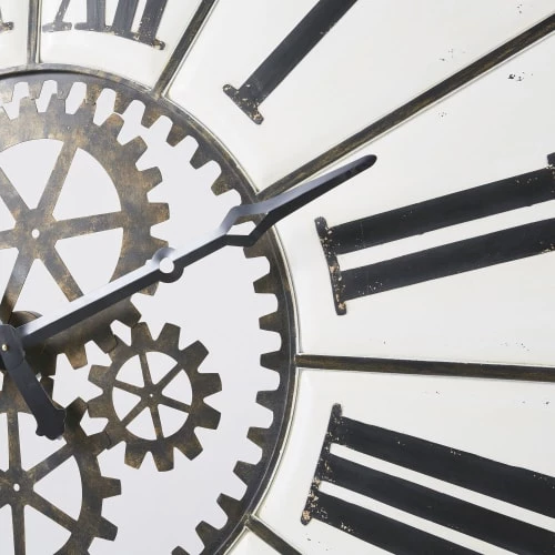 Structure : métal blanc et noir vieilli, rouages en métal noir, aiguilles noires