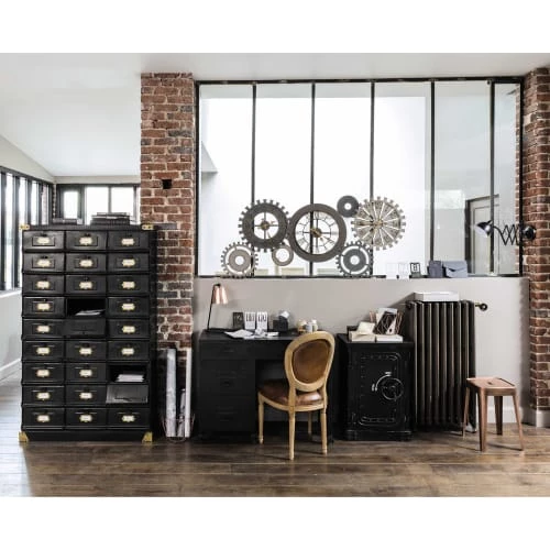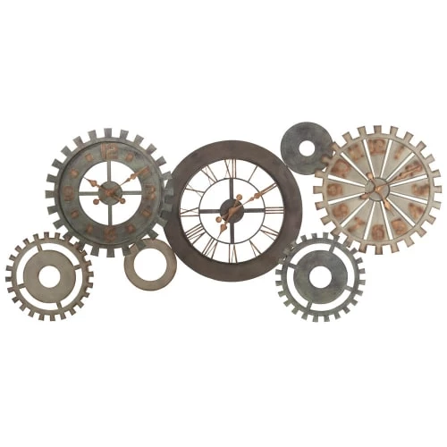 En quête de la pièce maîtresse de votre déco ? Misez sur l’originalité de l’horloge murale L164 MÉCANISME. Disposée tel un rouage, elle se compose de trois horloges en métal patiné. Dotées chacune d’un mécanisme indépendant, ces horloges se mettront à l’heure que vous souhaitez. Parfaite dans un intérieur de style indus, cette déco murale donnera du caractère à votre intérieur. De quoi faire sensation auprès de vos convives !