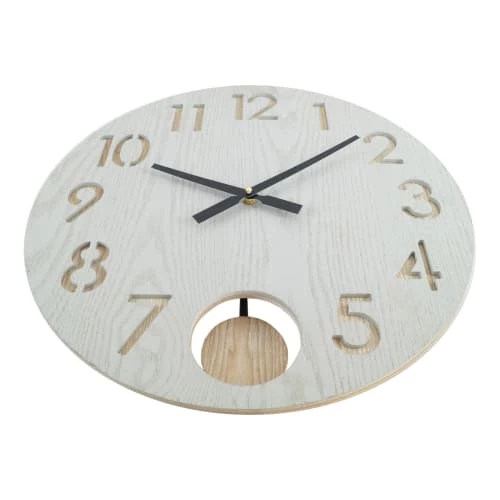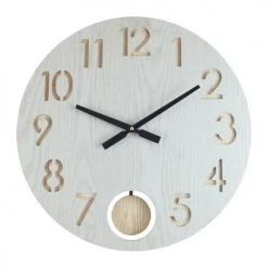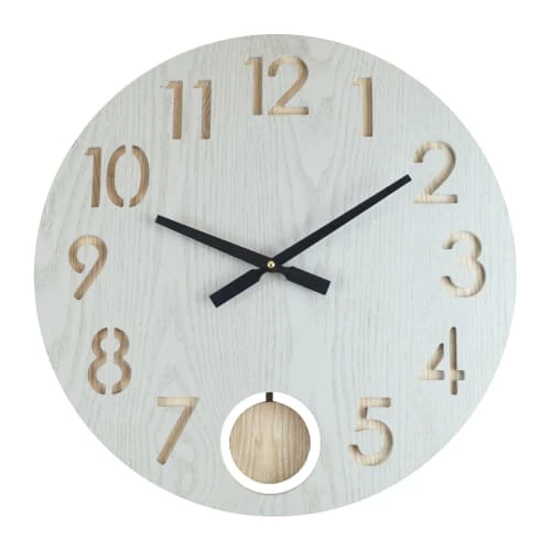 + HORLOGE PENDULAIRE : L’horloge murale Rebecca allie modernité et tradition. Il s’agit d’une horloge moderne marron et blanche avec des aiguilles noires contrastantes. Le pendule en décalage avec la base, un élément typique des horloges anciennes, ajoute une touche de design. Une horloge aux références rétro, mais avec un style moderne