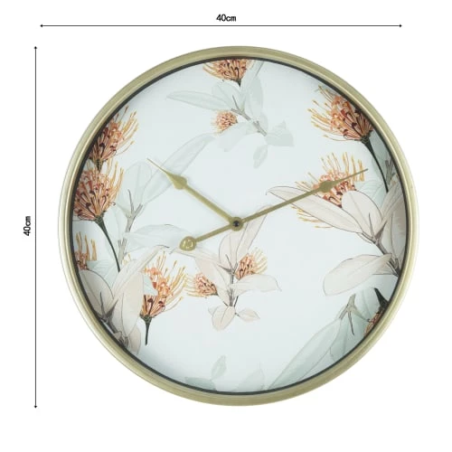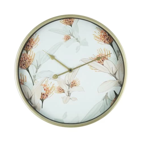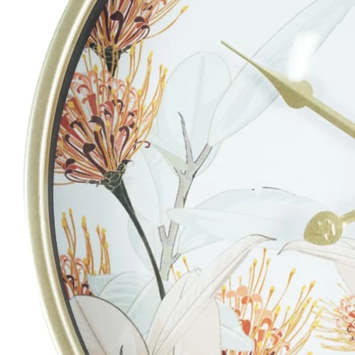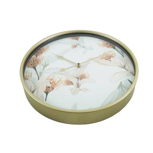 + HORLOGE AVEC IMPRIMÉ FLORAL : Le cadre et les aiguilles de l’horloge sont construits en métal doré. La base blanche est enrichie de décorations florales. Une horloge idéale pour ceux qui aiment le style floral