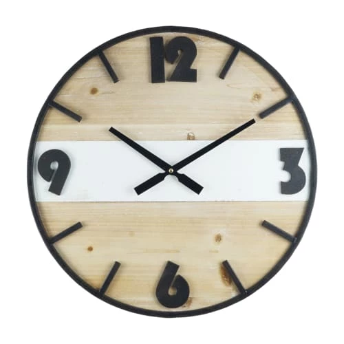 + HORLOGE MURALE BOIS ET MÉTAL : L’horloge murale Rebecca est idéale comme accessoire d’ameublement. Elle meuble avec goût et donne une touche de style à votre pièce. Elle est idéale comme horloge de chambre à coucher ou de salon. Les chiffres et la finition métallique contrastent avec la base en bois, ce qui en fait une horloge décorative idéale